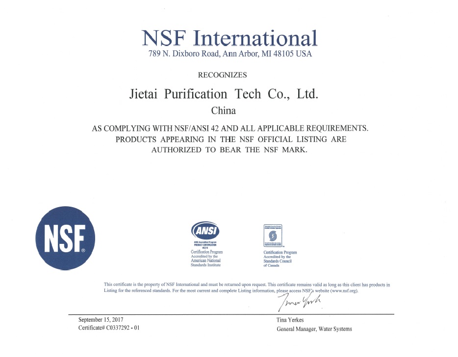 结构完整性、系统过滤性能,完全满足北美市场的认证要求。